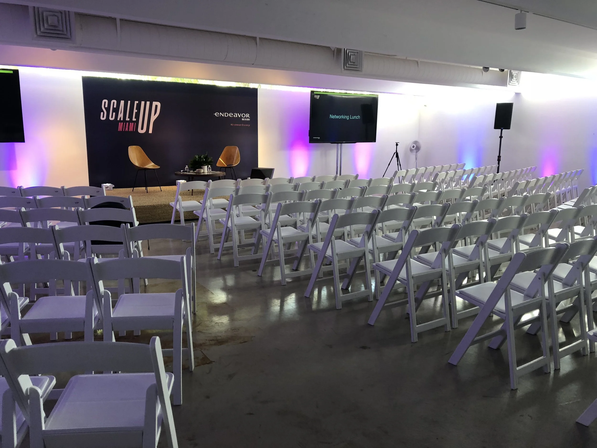 Inaugural conference featuring Miami Mayor Francis Suarez and Knight Foundation leadership. Managed complete venue retrofitting of historic art gallery space—a restored 1950s warehouse requiring creative solutions for electrical capacity, sightline optimization, temporary catering infrastructure, and off-site parking coordination. Coordinated vendor management (AV, catering, parking, rentals), event design and layout planning, and day-of execution with immediate breakdown. Delivered flawless execution with exceptional client satisfaction.